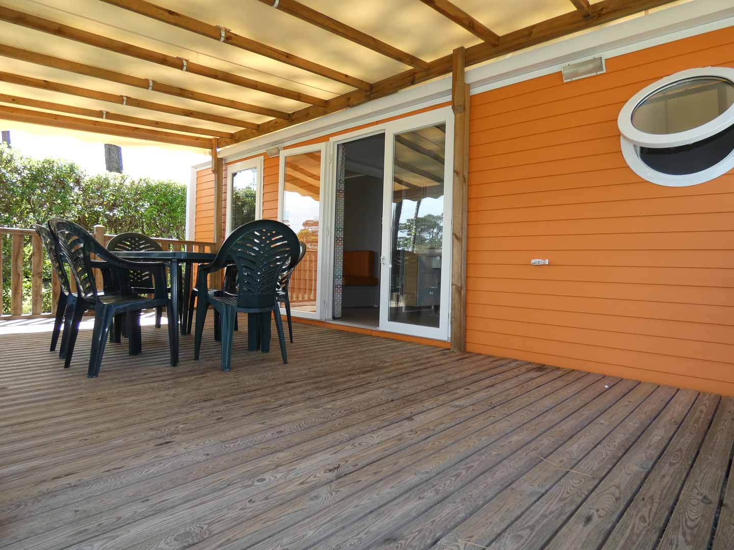 Mobil-home à deux chambres, le O’hara 2015 se distingue par l’espace de son salon principal. Un salon séparé est bien séparé de la salle à manger avec sa cuisine ouverte. Cette configuration est idéale pour permettre à chacun de trouver sa place et de se détendre. La salle de séjour est plus fonctionnelle que jamais. Le canapé peut être transformé en lit : la personne ou le couple qui le possède bénéficie d’un véritable espace chambre, séparé de la salle commune. Jusqu’à 6 personnes peuvent séjourner dans le mobile home O’hara 2015. La location de 46,10 m2 comprend également une chambre double, une chambre avec deux lits simples, une salle de bain et des toilettes, et « une belle terrasse familiale de 18 m2 : elle offre un espace de vie extérieur exceptionnel. Son salon de jardin invite tous les résidents de la location, famille ou amis, à se retrouver autour des repas.